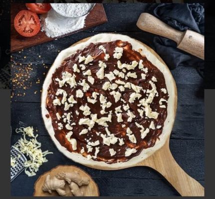 Marinated Tandoori Chicken, Special Tandoori Sauce, Cheese, Onion, Chilli Flakes, Basil Pesto and Fresh Tomato.